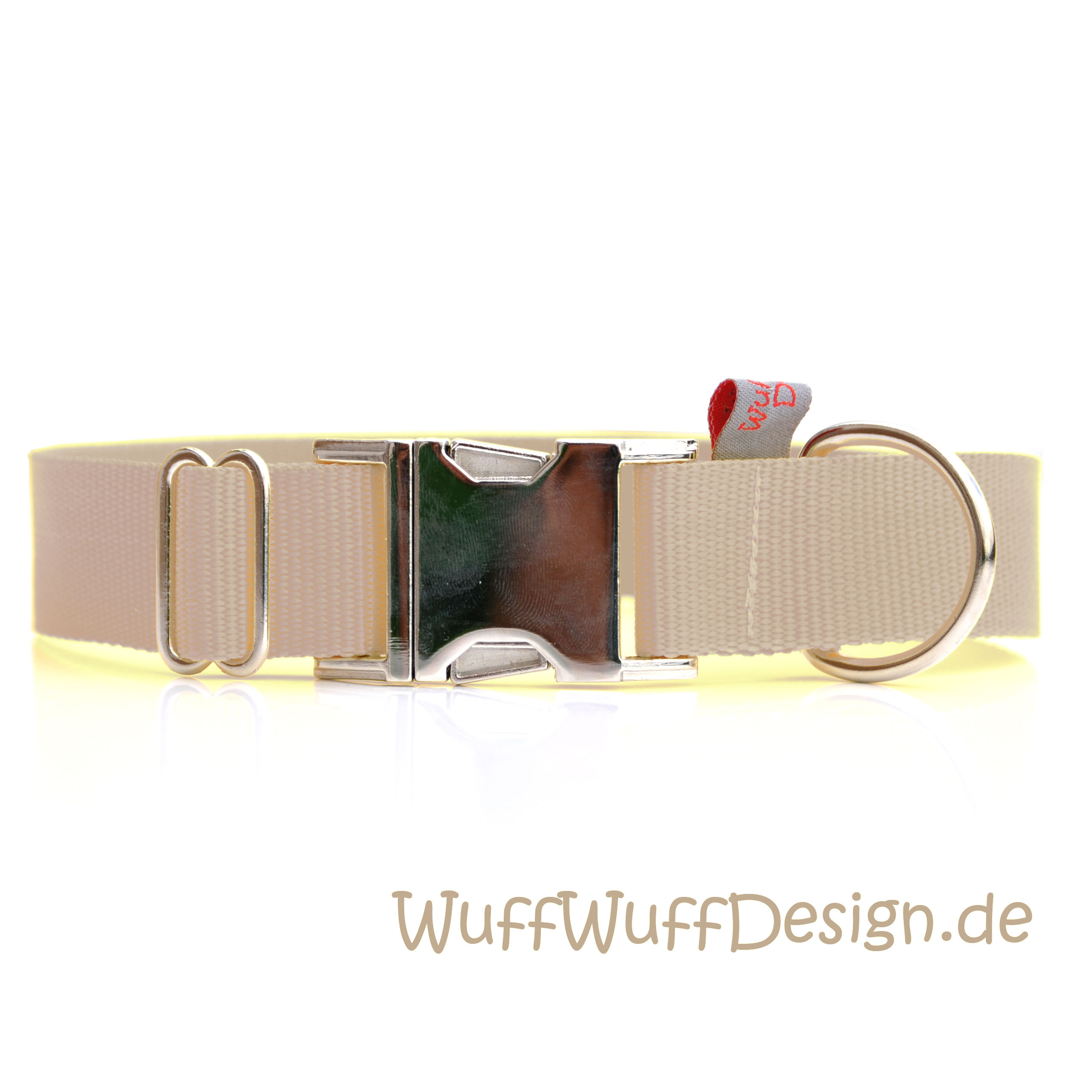Erleben Sie die Farbenvielfalt unserer WuffWuffDesign Hundehalsbänder im Hundeshop mit Biss. Alle unsere Hundehalsbänder sind aus reisfestem, weichem Gurtband anschmiegsam, farbecht und mehrfach Maschinen vernäht. Ein Metallschieber ermöglicht Ihnen den optimalen Halsumfang Ihres Hundes anzupassen. Die Kunststoffschließe sorgt für ein präzises schnelles öffnen und schließen, vergessen Sie hakelnde Verschlüsse! Ein stabiler Metall D-Ring ermöglicht das schnelle einhaken des Karabiners der Hundeleine.