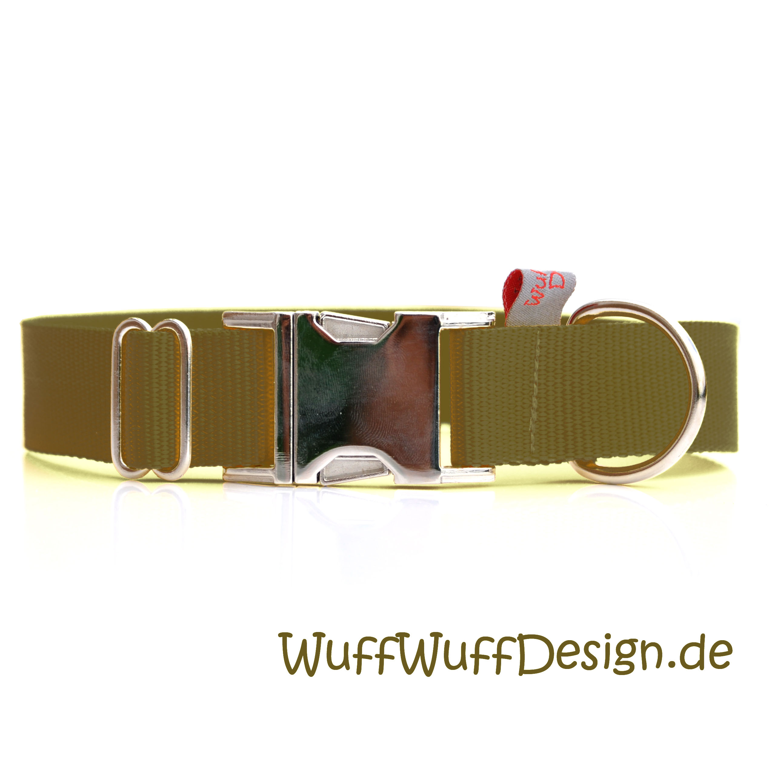 Erleben Sie die Farbenvielfalt unserer WuffWuffDesign Hundehalsbänder im Hundeshop mit Biss. Alle unsere Hundehalsbänder sind aus reisfestem, weichem Gurtband anschmiegsam, farbecht und mehrfach Maschinen vernäht. Ein Metallschieber ermöglicht Ihnen den optimalen Halsumfang Ihres Hundes anzupassen. Die Kunststoffschließe sorgt für ein präzises schnelles öffnen und schließen, vergessen Sie hakelnde Verschlüsse! Ein stabiler Metall D-Ring ermöglicht das schnelle einhaken des Karabiners der Hundeleine.
