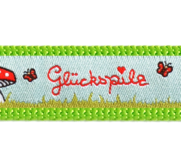 Wähle die passende Materialbreite vom Gurtband für deine Fell Nase aus, dann die Lieblingsfarbe und ein Motiv das dir am besten gefällt. Vergesse nicht den Halsumfang zu messen. Jedes von unseren Handgefertigten Hunde Halsbändern ist verstellbar, auch wenn sich mal der Halsumfang deines Hundes verändert und mehrfach Maschinen vernäht.