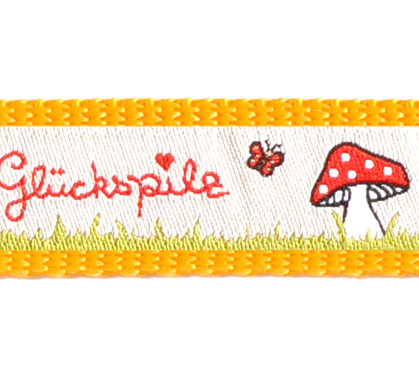 Produktinformationen "Hundehalsband Maisgelb mit verschiedenen Borten 20 mm Bandbreite "