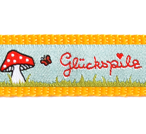 Produktinformationen "Hundehalsband Maisgelb mit verschiedenen Borten 20 mm Bandbreite "